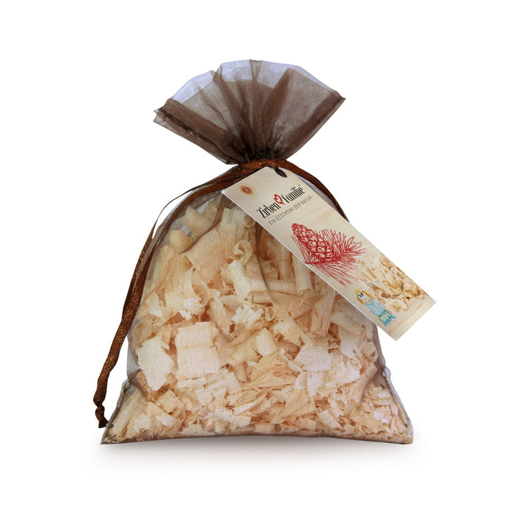 Für unser Duftsackerl verwenden wir gehobelte ZirbenFlocken, liebevoll verpackt im feinen Organzasäckchen 🎀 für natürlichen Zirbenduft in Schrank, Auto oder Wohnraum. 🏡✨